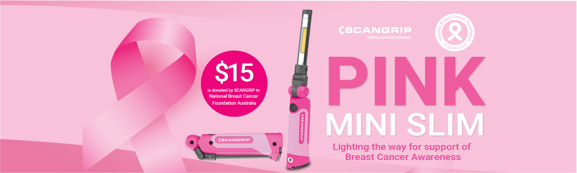 SCANGRIP is proud to partner with the National Breast Cancer Foundation (NBCF) Australia with the release of the limited-edition PINK MINI SLIM — a powerful, compact torch that represents strength, support, and solidarity.